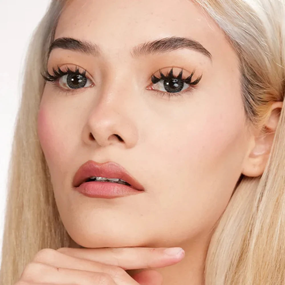 Mit unregelmäßigen Längen, strategisch platzierten Büscheln und einer übertrieben „spiky“ Struktur ziehen diese Wimpern die Aufmerksamkeit auf sich und schaffen auffällige Definition, Dimension und Tiefe.